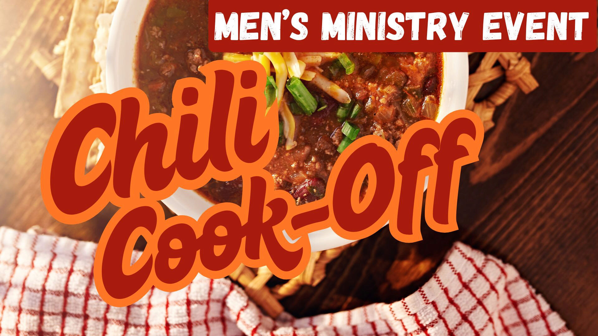 Youth and Adult Guy's Chili Cook-Off! Come join us on Saturday, January 17th, 2026 at 5pm to 7:30pm. If you would like to bring a chili, please email Matt Brine. We will also have a devotion focused on: Discipline of Integrity from the book "Discipline of a Godly Man", by R. Kent Hughes.